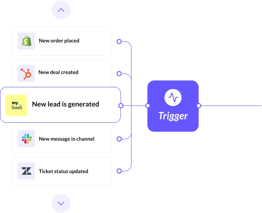 Trigger contextual, real-time automation from your app, let users activate and customize timer-based workflows with ease, and allow AI agents to perform permission-based actions across any SaaS.
