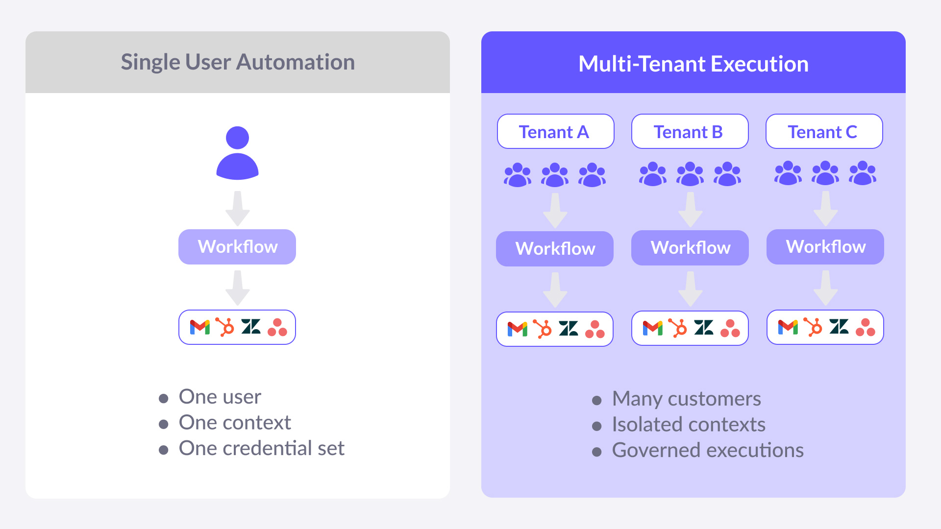 n8n is a good example. While powerful as a standalone automation tool, it is not designed as a multi-tenant execution backbone for SaaS platforms. Running n8n in an embedded scenario requires heavy customization to simulate tenant isolation and governed lifecycle control. We explored this in detail in our article on embedding n8n in a SaaS app: Embedding n8n in Your SaaS App: What’s Possible and What You’ll Need to Build