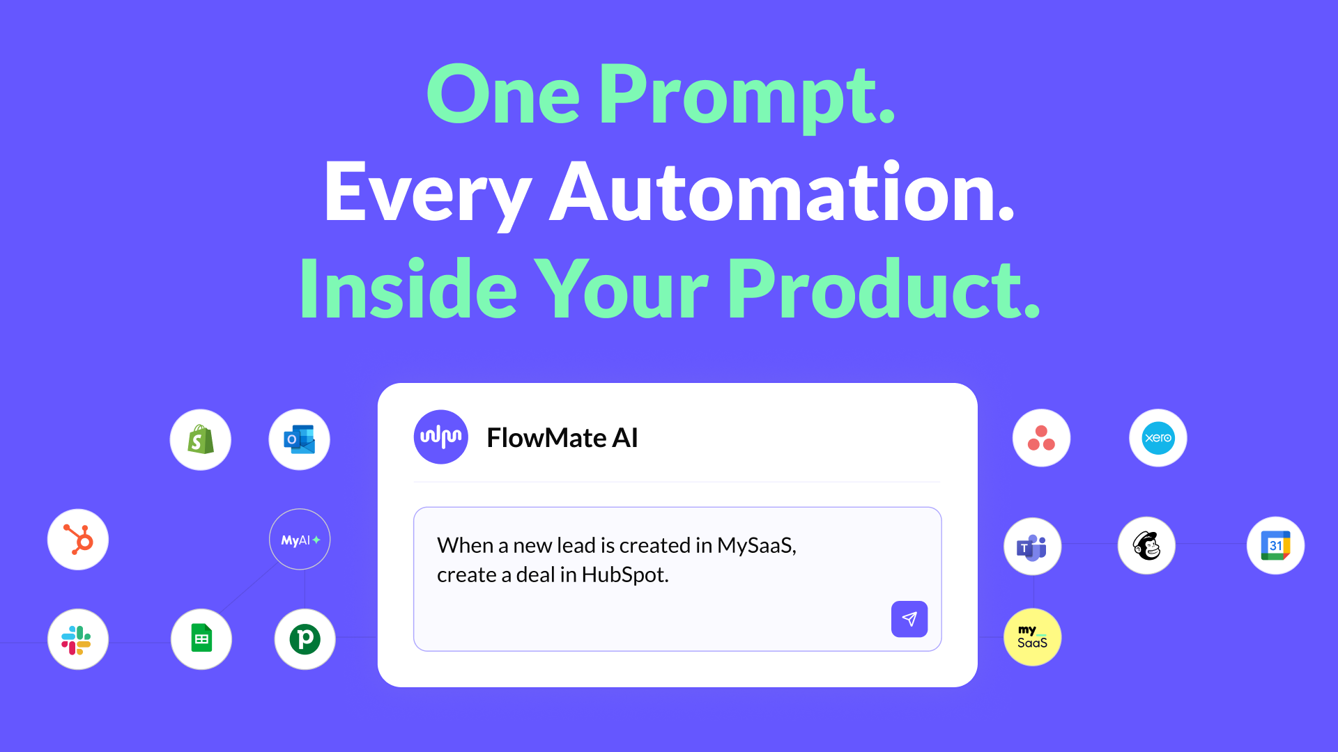 FlowMate AI lets any PM on your team describe a cross-app integration and ship it as a native feature the same day.