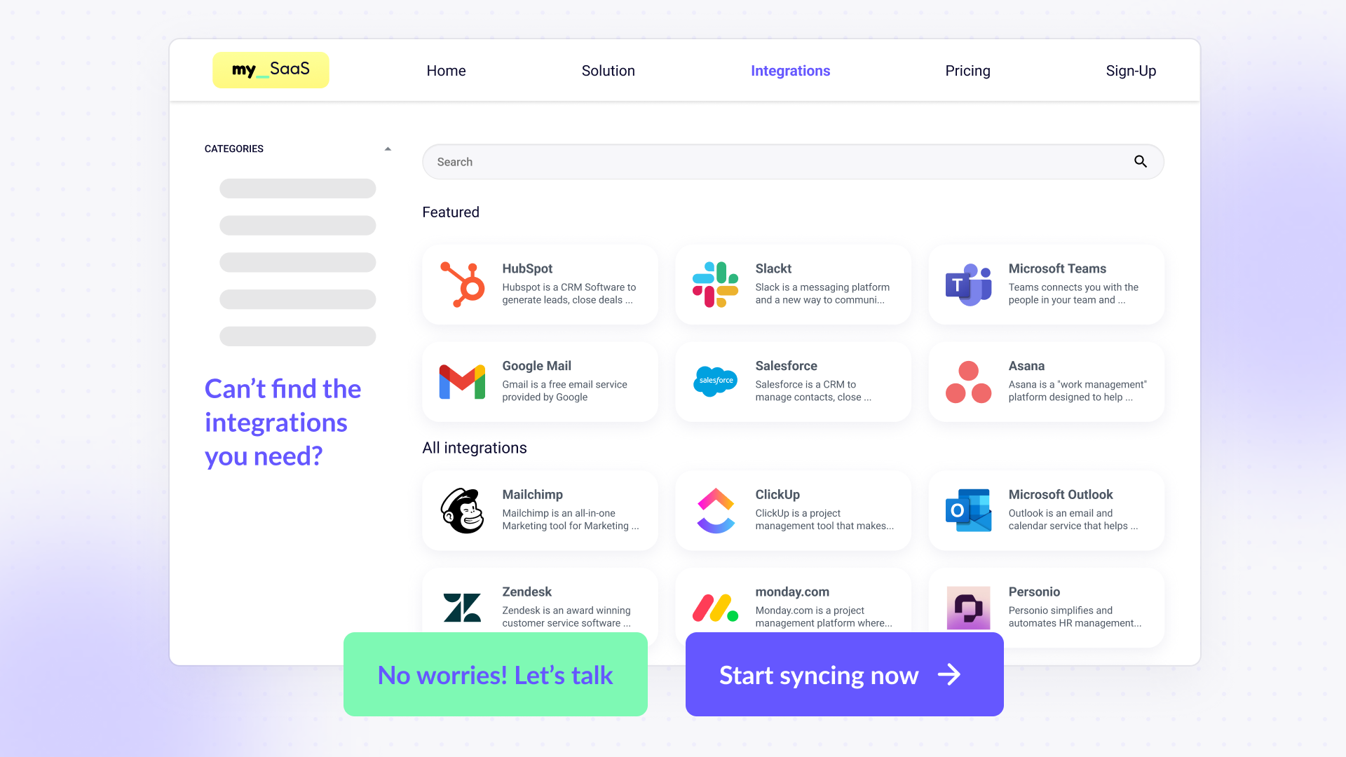 Too often, SaaS websites hide their integrations in obscure menus or showcase just a few logos buried at the bottom of a feature page. But if you’re positioning yourself as a workflow enabler, your integration offering deserves real estate – and it can set you apart from the competition.