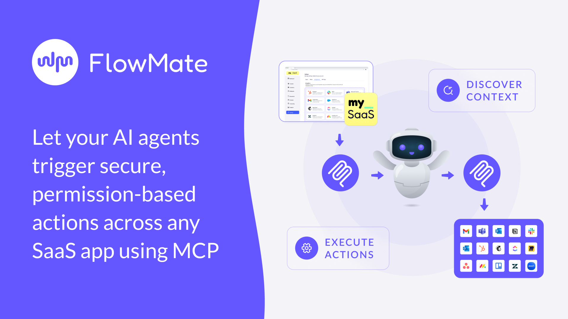 Many SaaS teams are racing to embed AI agents into their products, but most AI agents are starkly limited. Why? Because they lack the infrastructure to take real action across third-party tools. In this post, we unpack what’s missing, why the MCP standard matters, and how FlowMate MCP turns your AI agent into an operator by unlocking real automation across your customers’ stack.