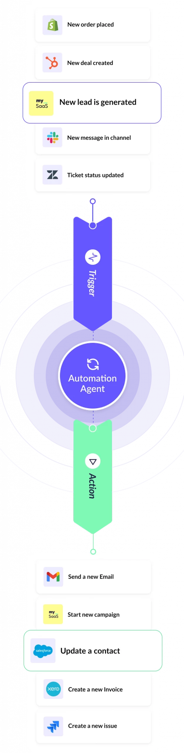 Give your AI agent the ability to perform real actions across your users’ SaaS tools. Trigger workflows, route data, and execute tasks with secure authentication and real-time context so your agent moves from suggestions to true automation.