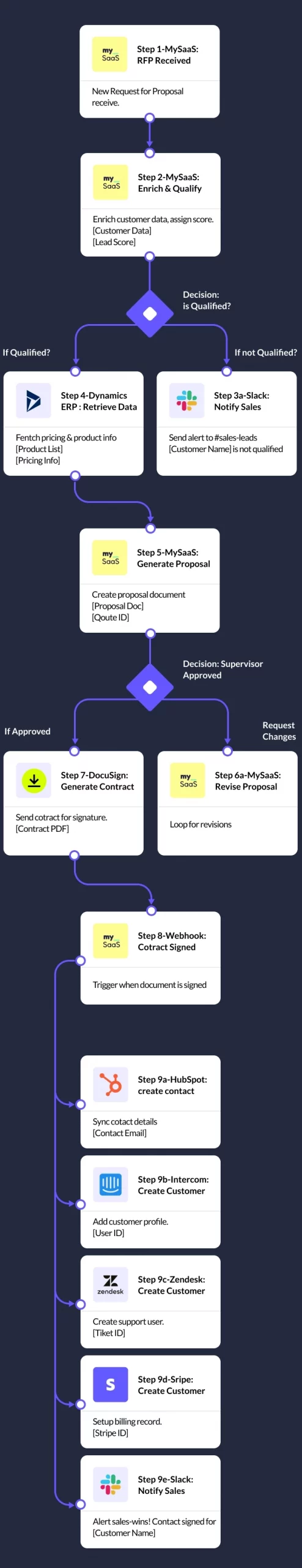 Give your workflow platform the power to orchestrate smart, context-rich automation. Connect any SaaS app, manage execution, and bring real-time workflow context directly into your product.